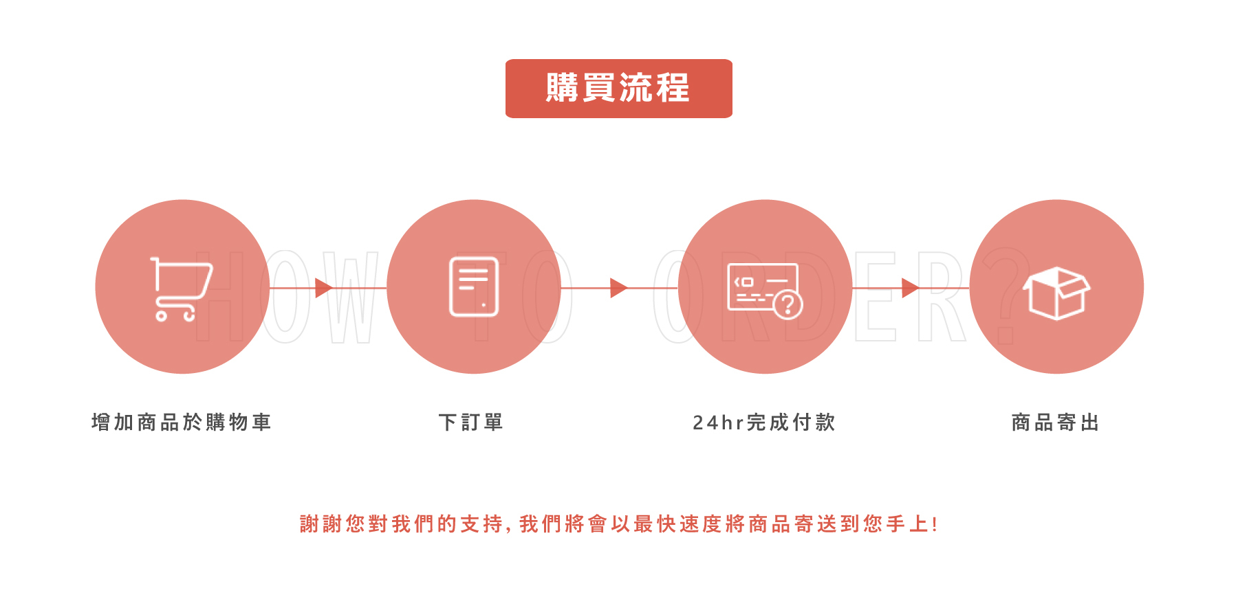 確認款項後,寄出商品我們將於3-5個工作天內,將您的商品寄送給您。如遇特殊事件致無法出貨,會先以電話或信件告知。