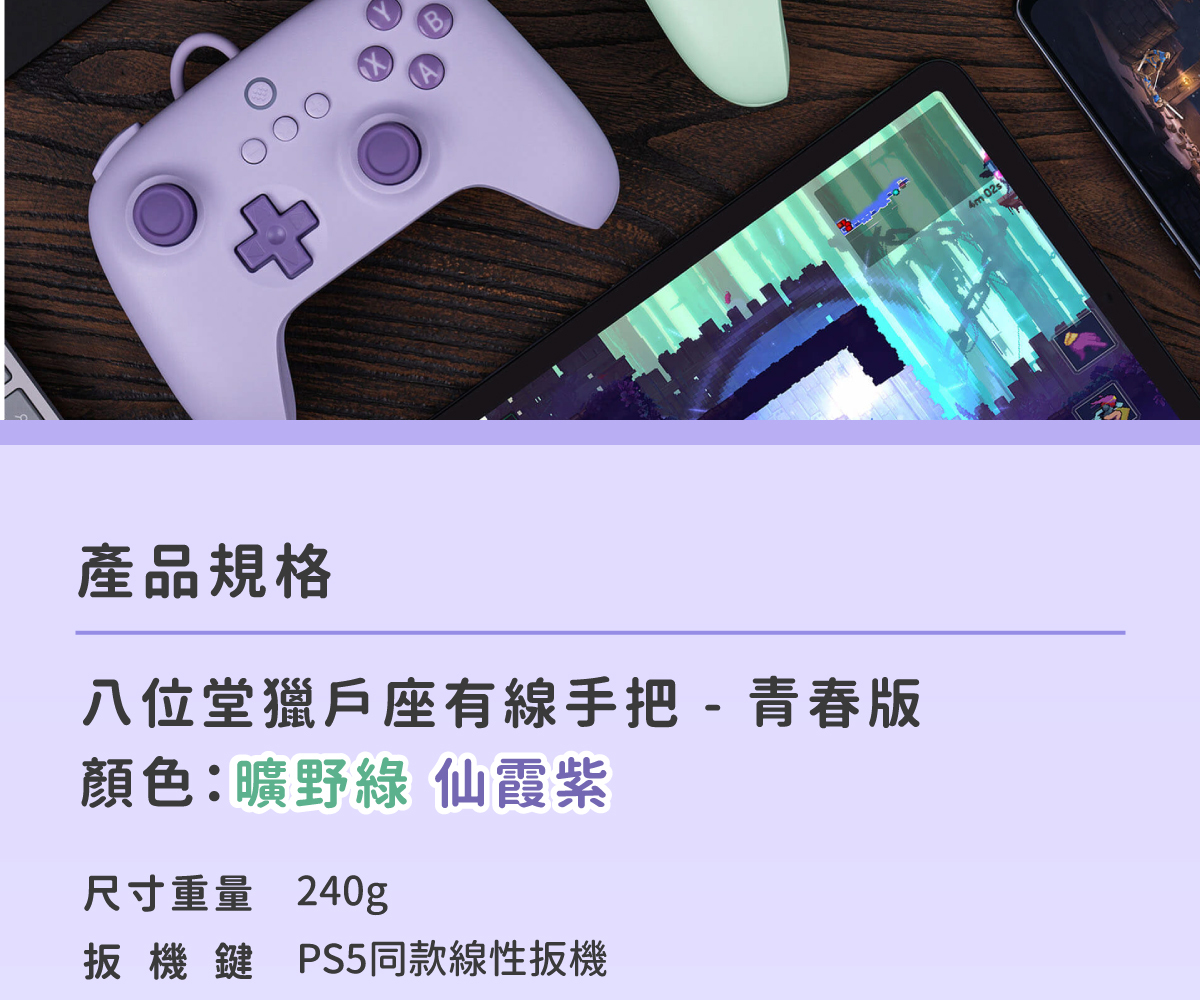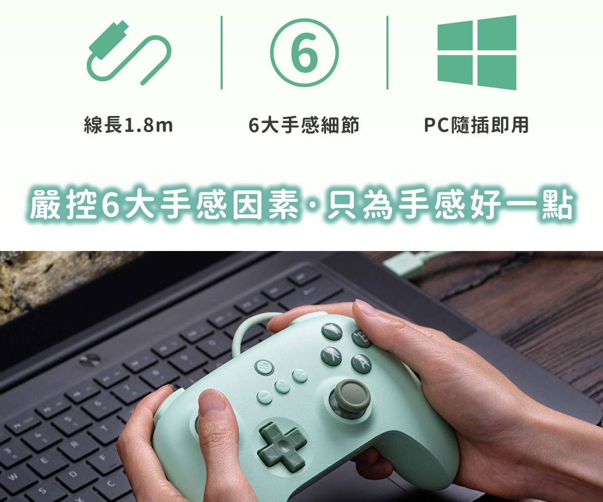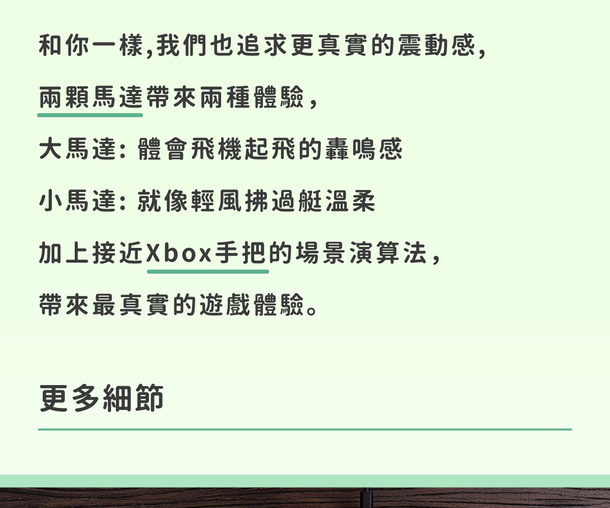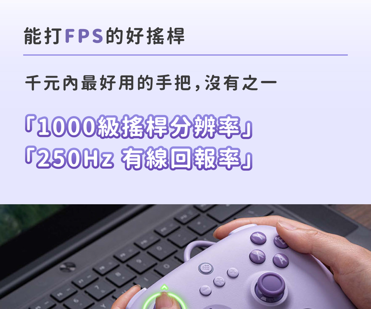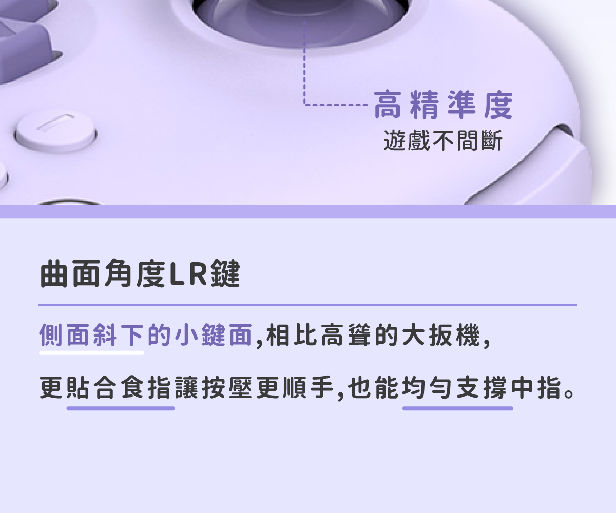● 250Hz 有線回報率、大小震動馬達、巧克力按感、K-Silver ®品牌搖桿漸變曬紋..等