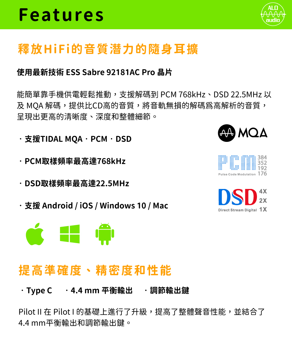 ◆ USB-C DAC 4.4耳機線(MQA版)