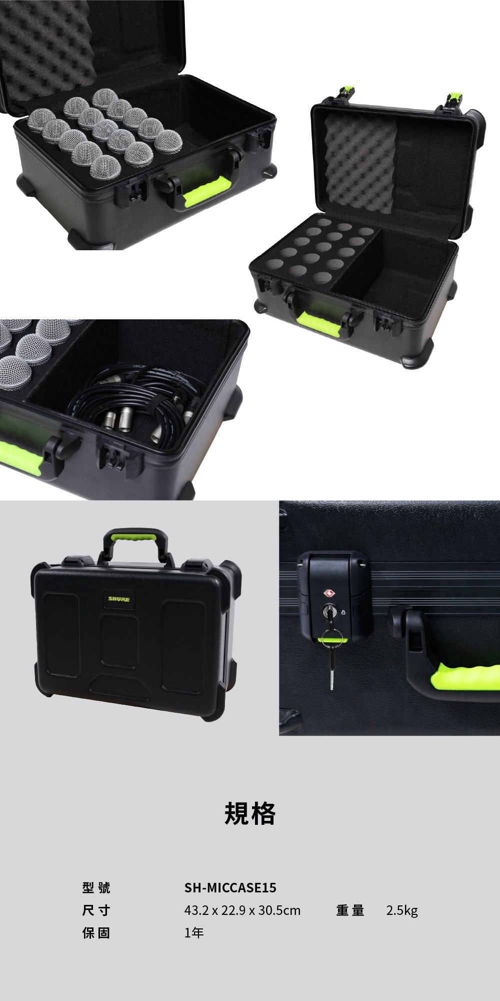 SHURE by Gator 有線麥克風TSA 收納箱 (15隻) SH-MICCASE15