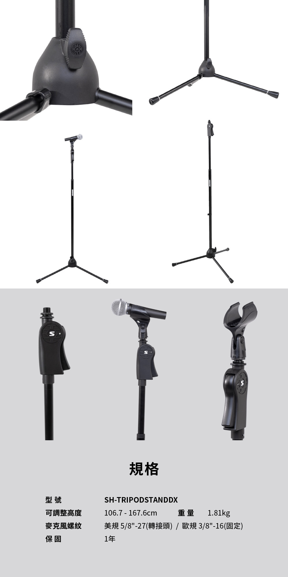 SHURE by Gator 三腳麥克風支架加握把 SH-TRIPODSTANDDX