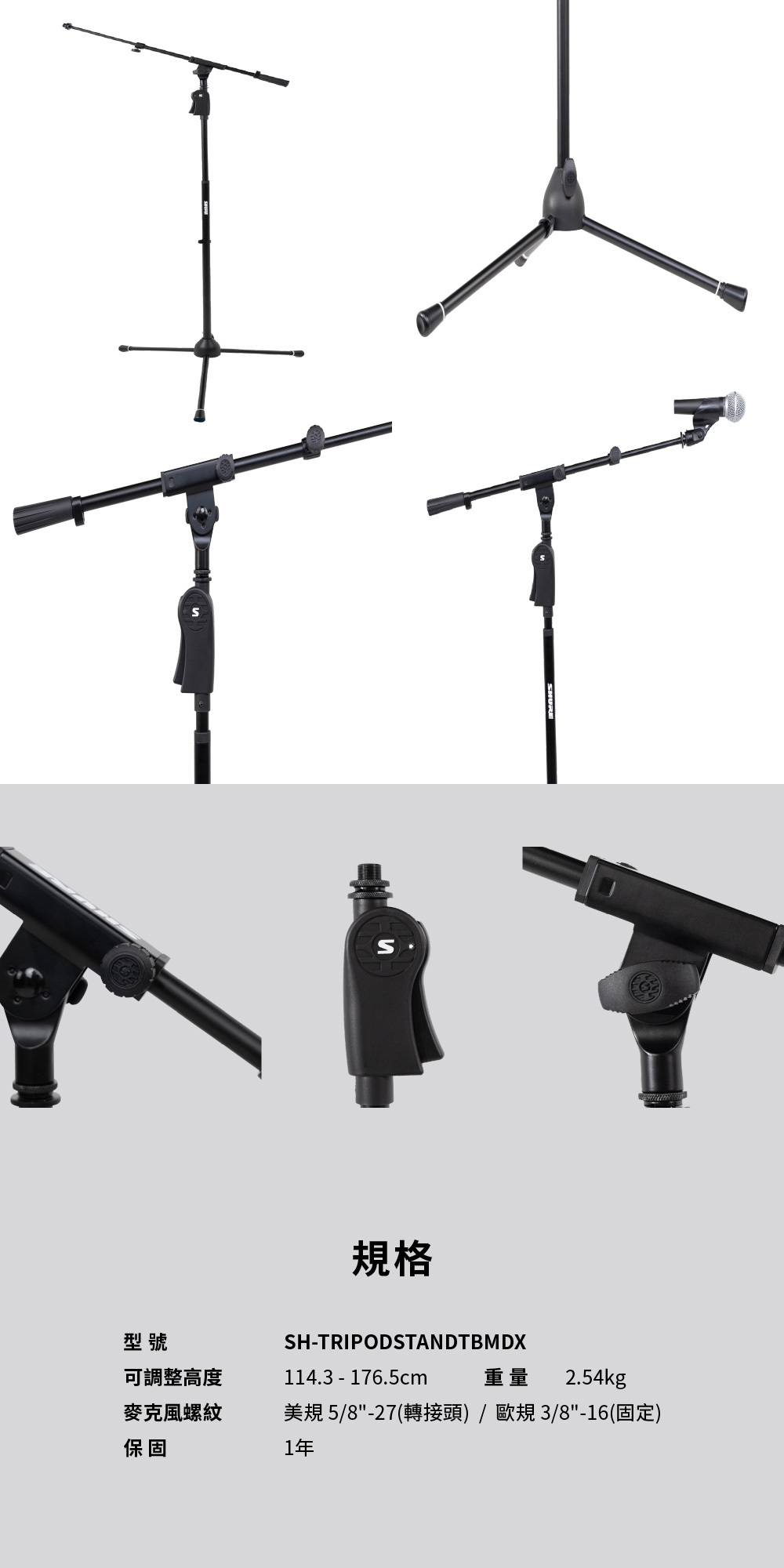 SHURE by Gator 升級版三腳麥克風支架加伸縮桿 SH-TRIPODSTANDTBMDX