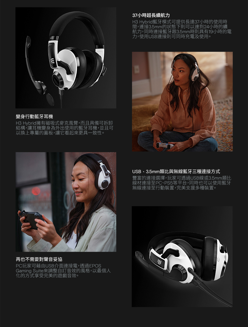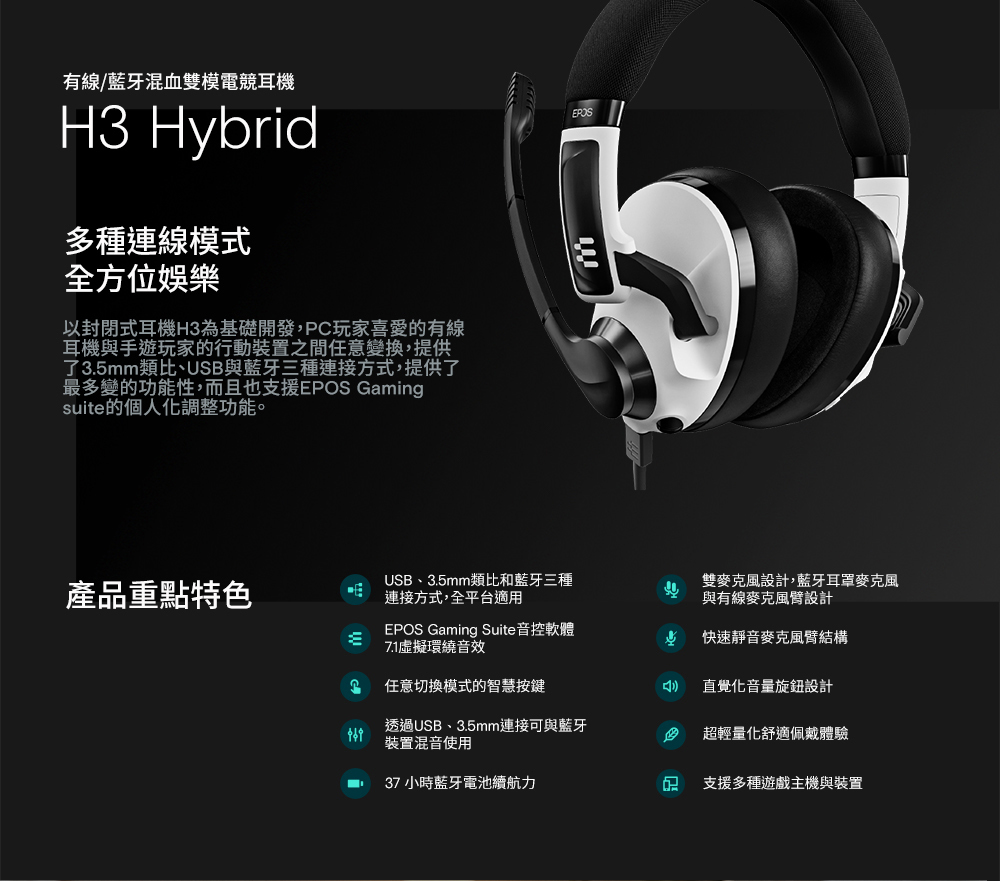 EPOS H3 Hybrid 7.1有線、藍牙雙模式電競耳機