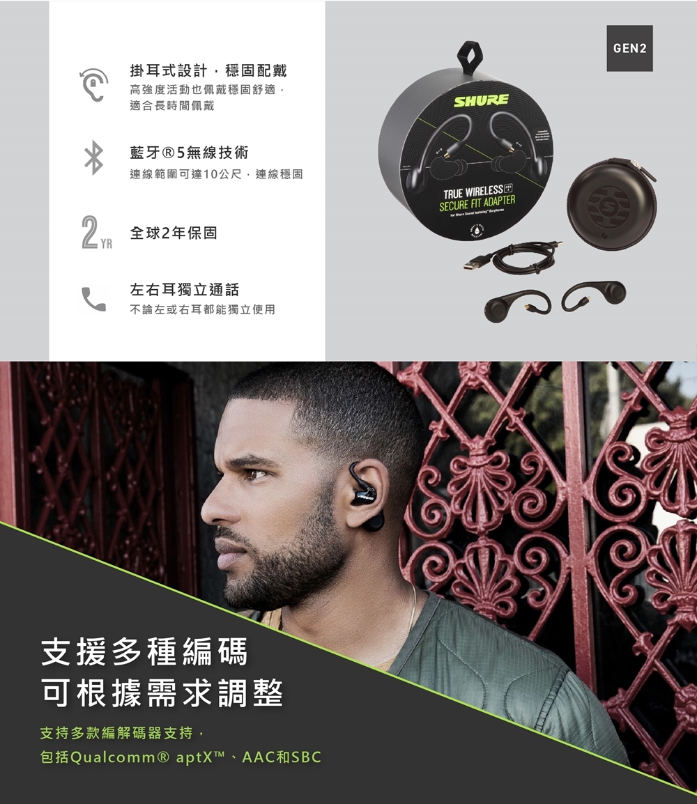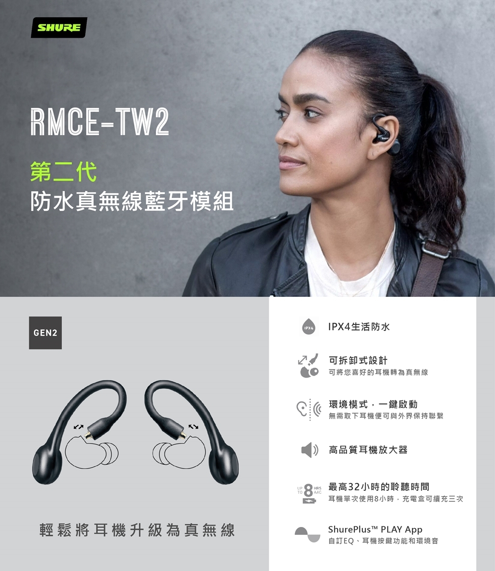 SHURE 第二代 RMCE-TW2 防水真無線藍牙模組