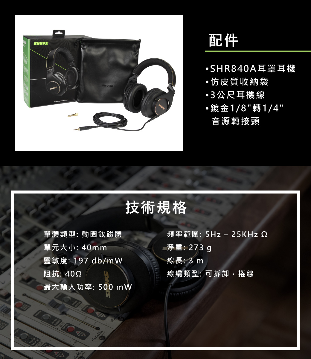 SHURE SRH840A 經典進化 錄音級監聽耳罩